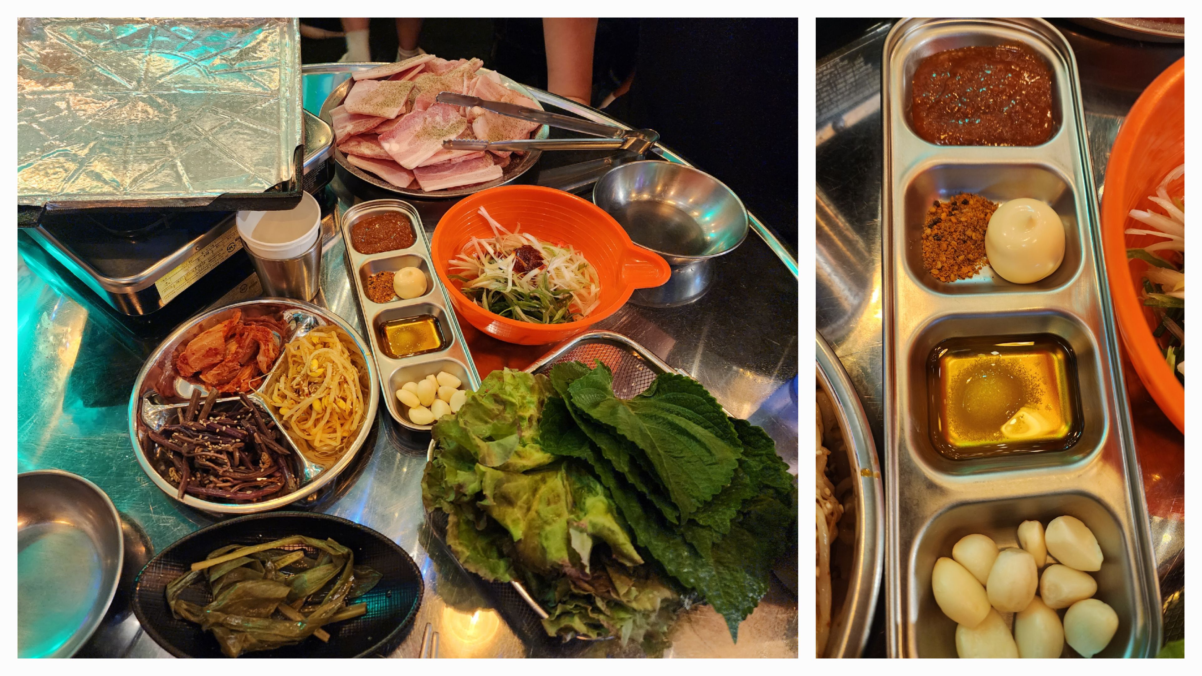 개인적으로 구운 김치랑 고기 밥 한 숟가락 딱 먹는 게 너무 꿀조합으로 맛있는 거 같아요.