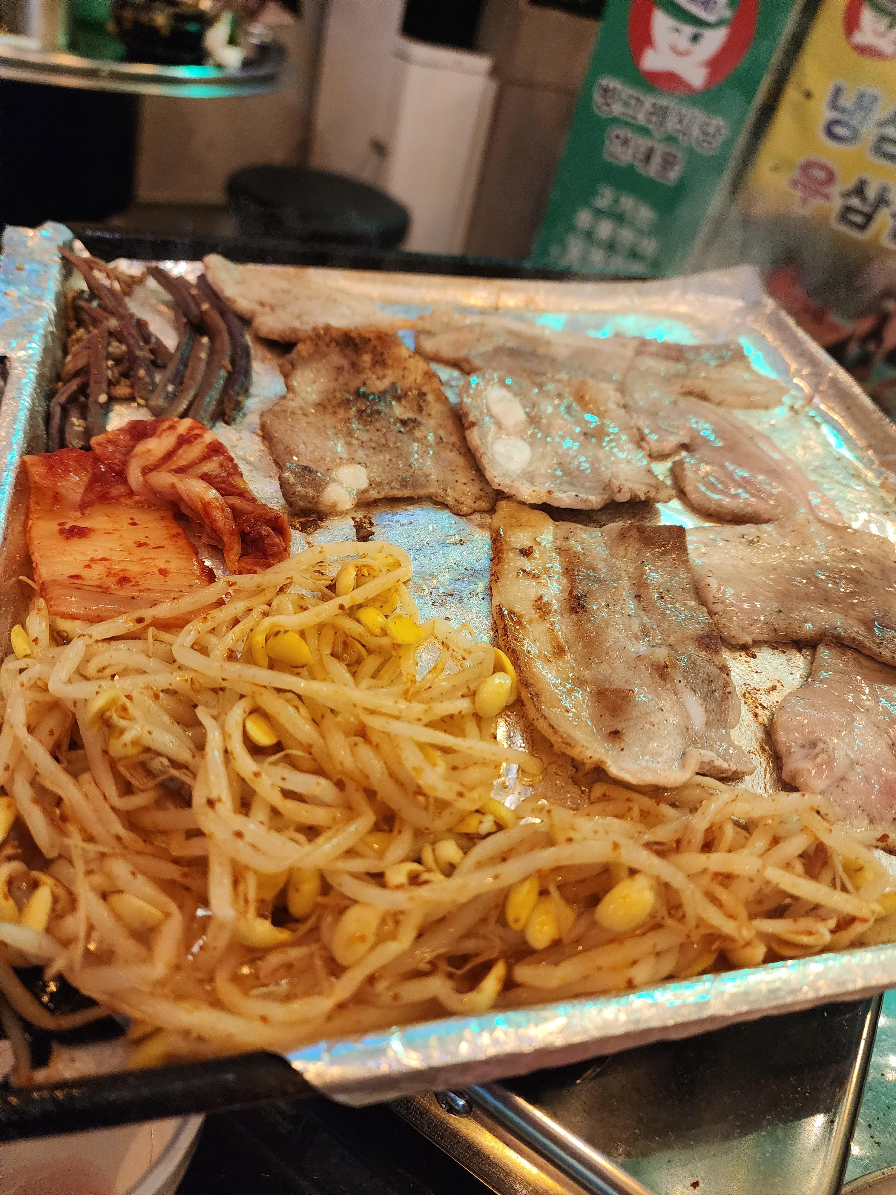 불판을 먼저 달궈주고 고기를 올려준 뒤 기름이 나오면 콩나물, 고사리, 김치까지 구워 먹으면 진짜 맛있어요!!