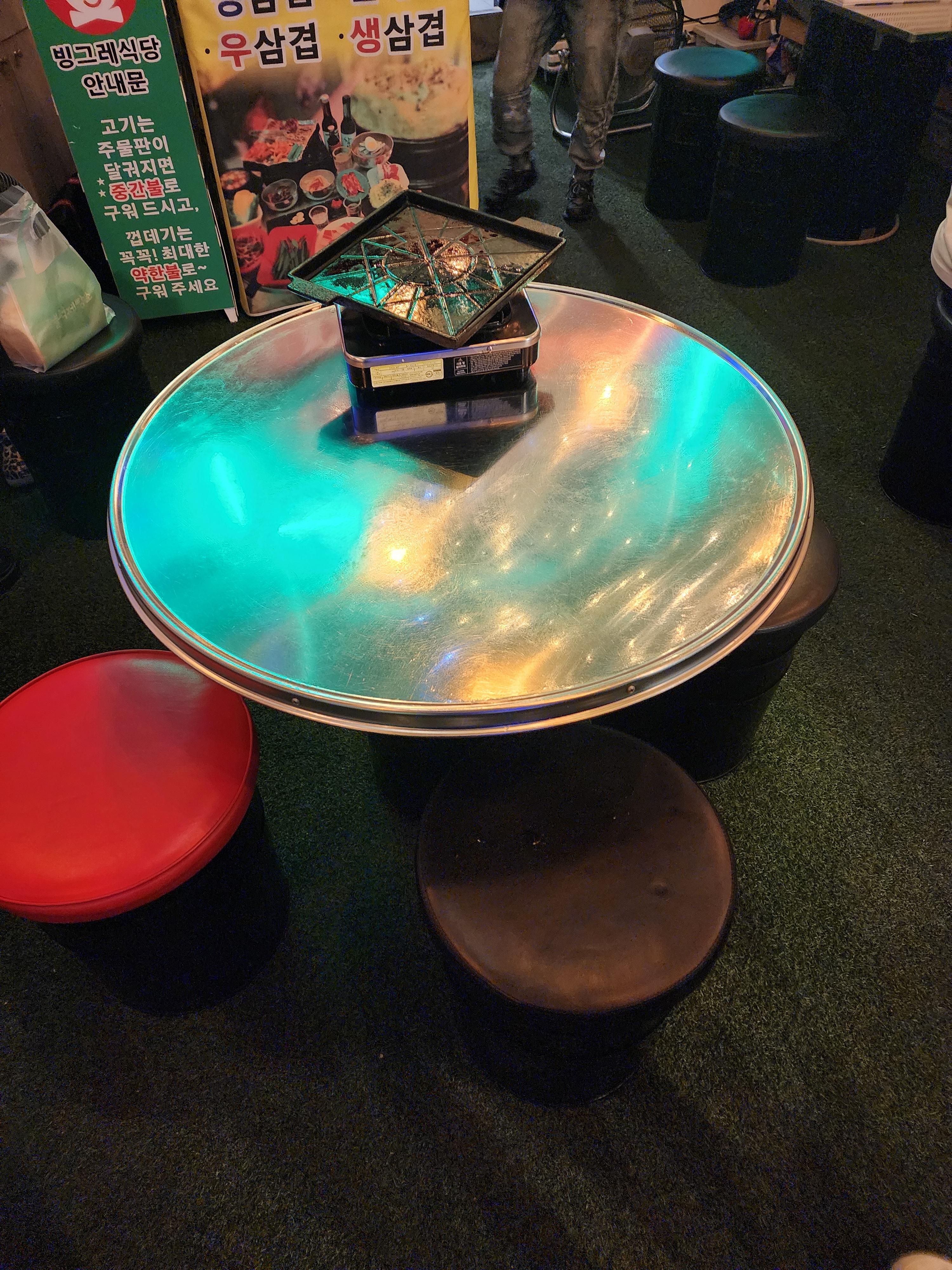 과거 속으로 들어와서 식사를 하는 기분이었어요! 원형 테이블이 등받이가 없어서 불편하신 분들은 등받이 있는 4인석 테이블도 있어요~!!