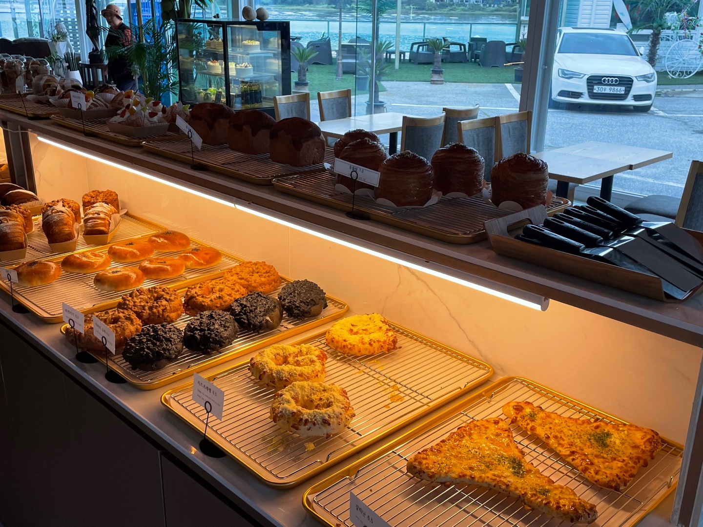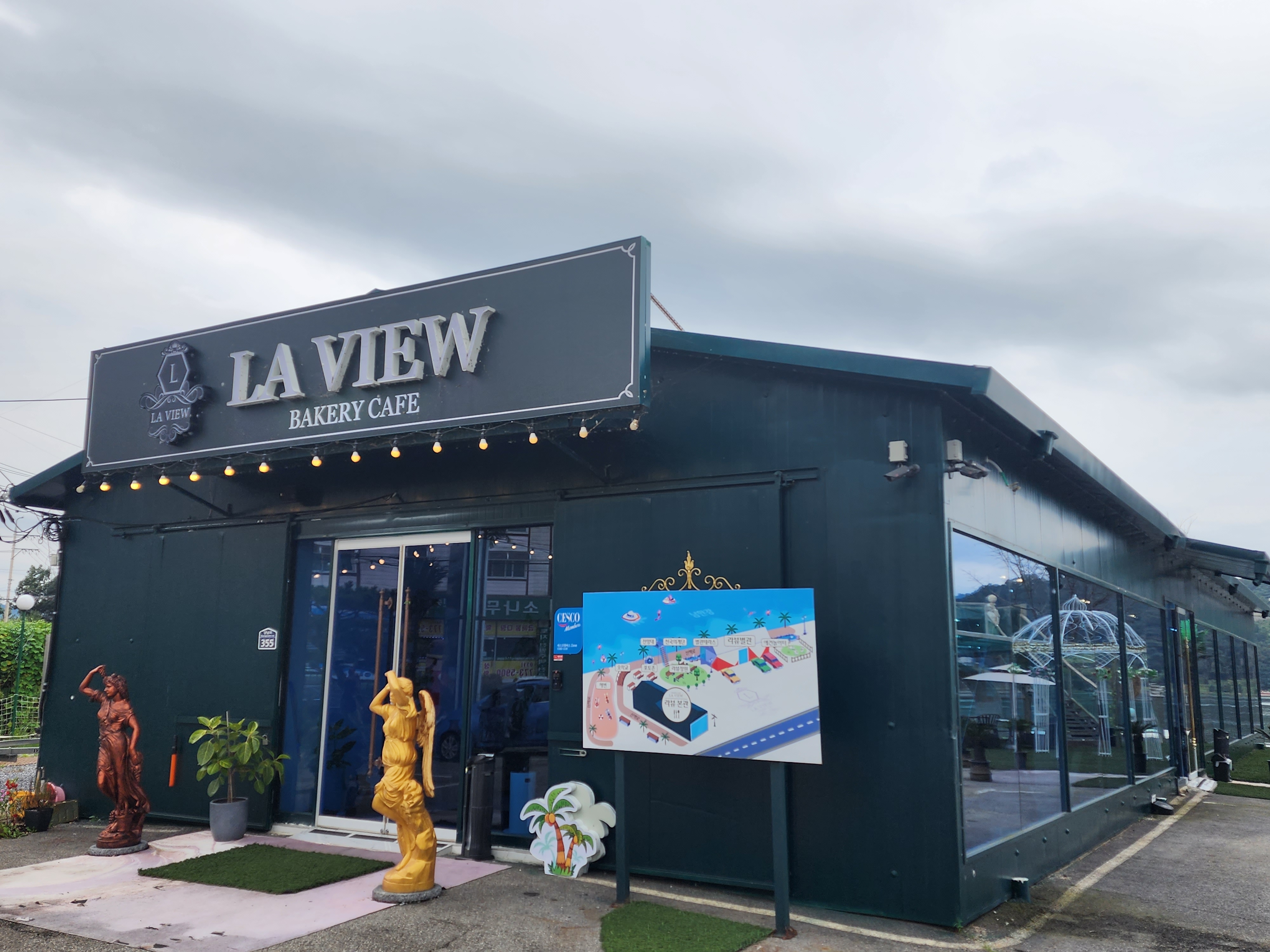 라뷰 베이커리카페의 외관모습인데 넓은 통창으로 되어있어서 화사한 분위기를 주더라고요.