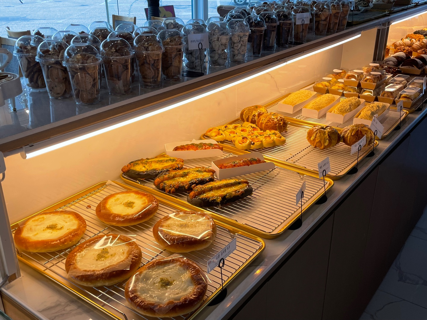 라뷰 베이커리라는 이름에 걸맞게 커피음료뿐만 아니라 베이글, 소금빵, 크로와상, 몽블랑, 생크림 카스테라, 케이크 등등 다양한 종류에 빵과 케이크도 있어서 각자 취향과 입맛에 맞게 골라 먹을 수 있어 좋았어요.