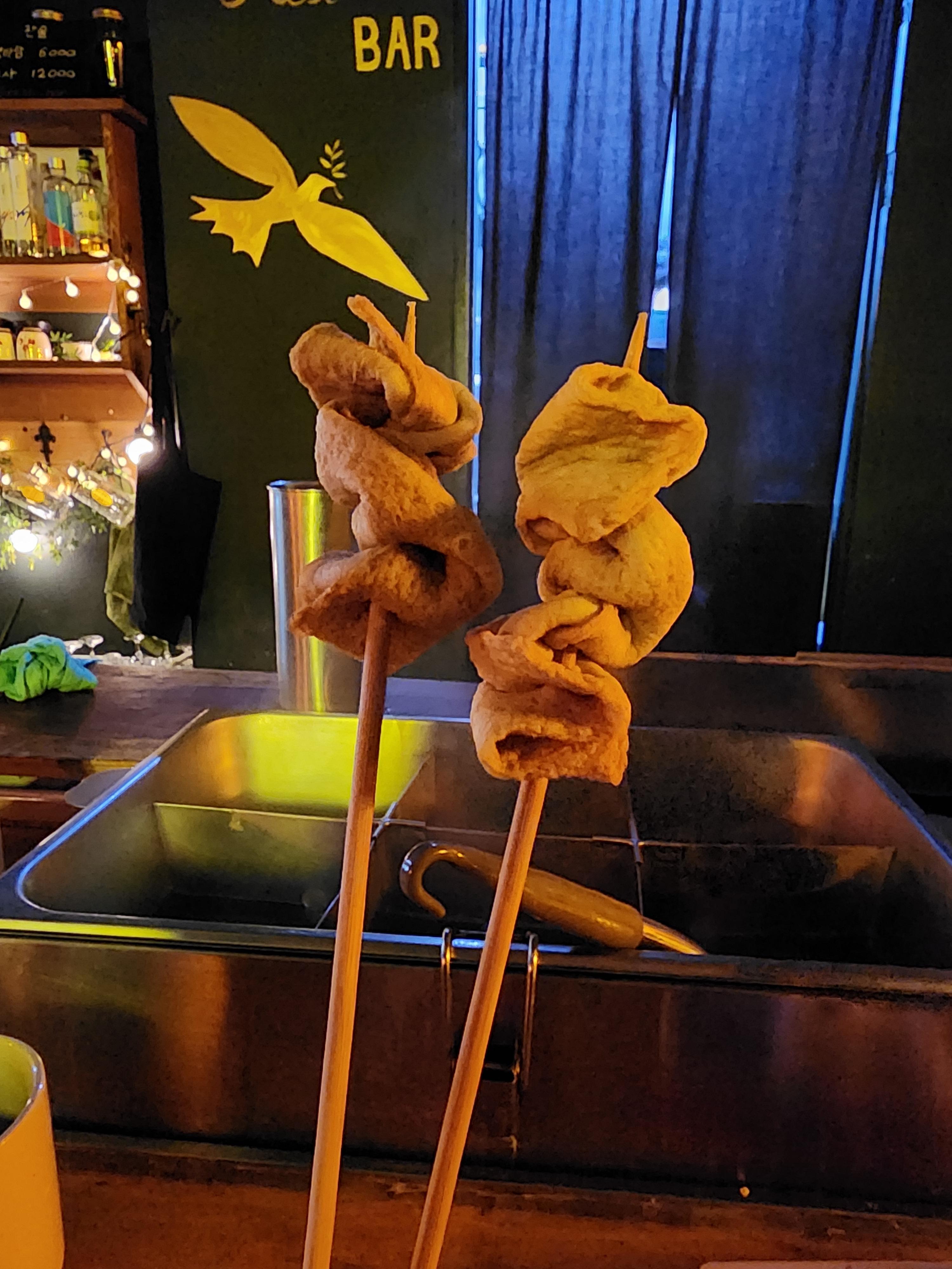 따로 주문이 가능한 어묵과 치킨가라아게, 소떡소떡, 치즈볼, 모찌리도후, 어묵튀김등