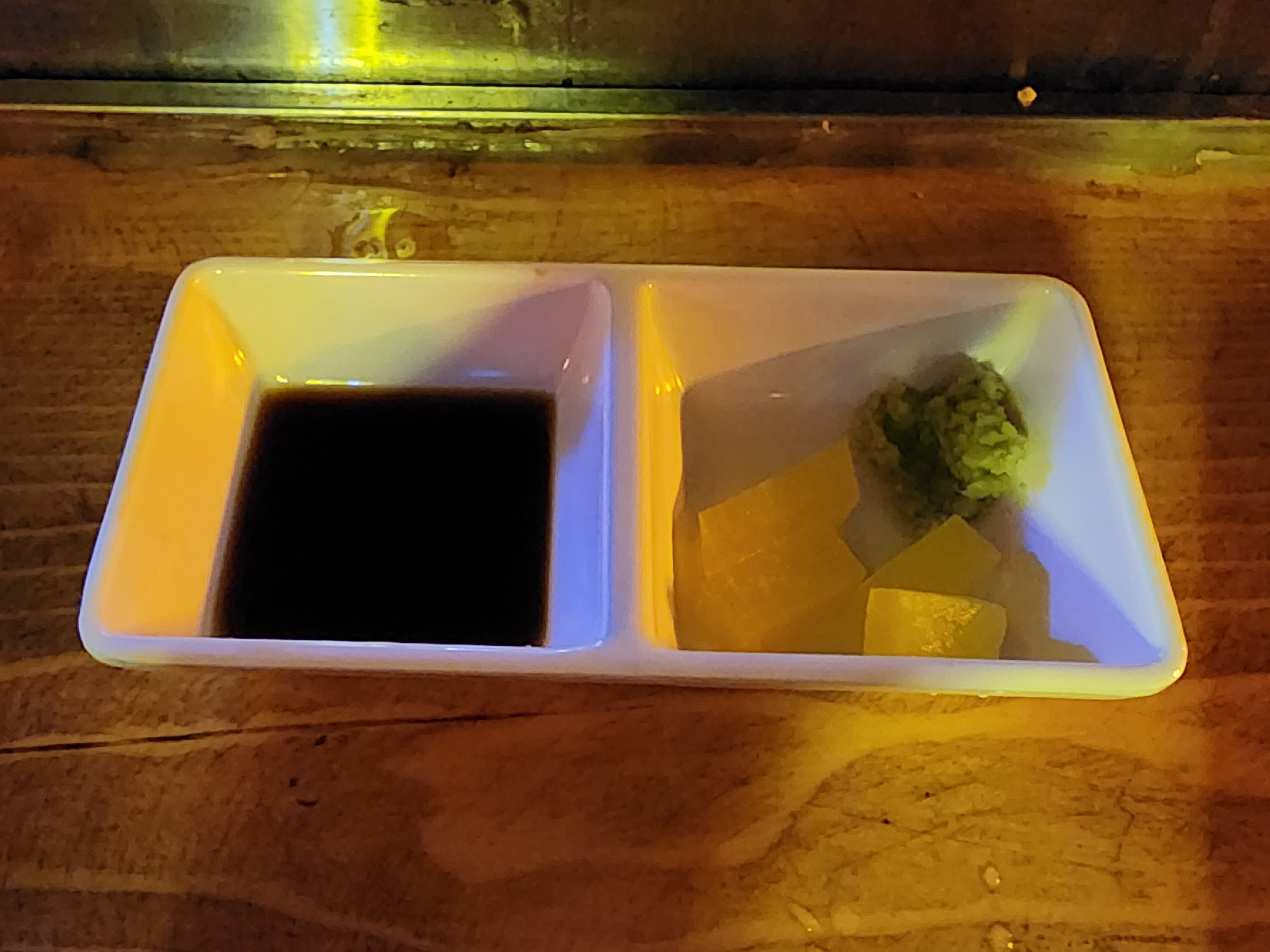 기본 테이블 세팅으로는 간장과 생와사비 단무지로