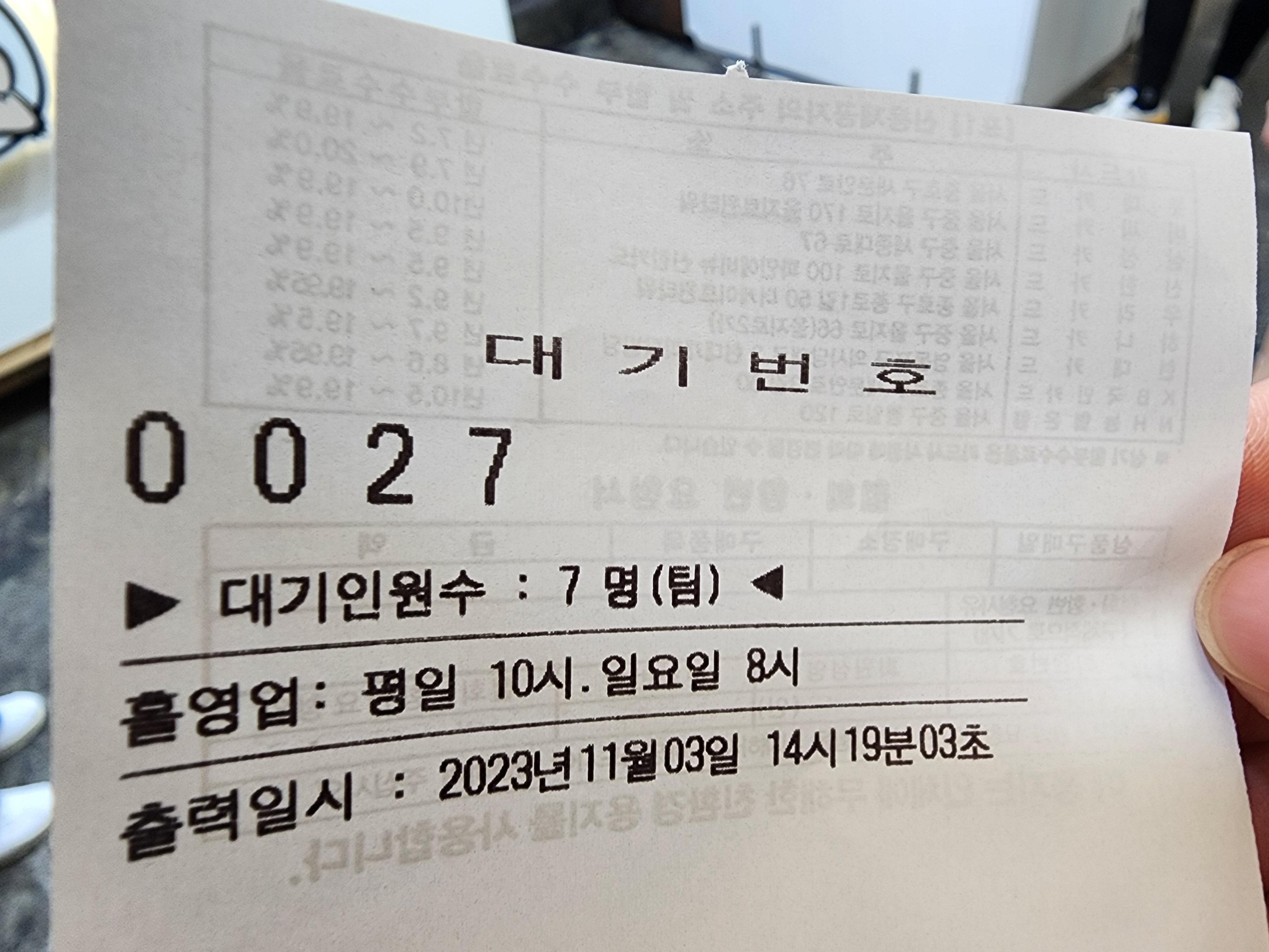 홀 웨이팅 하겠다고 얘기하시면 번호표를 주시더라고요.