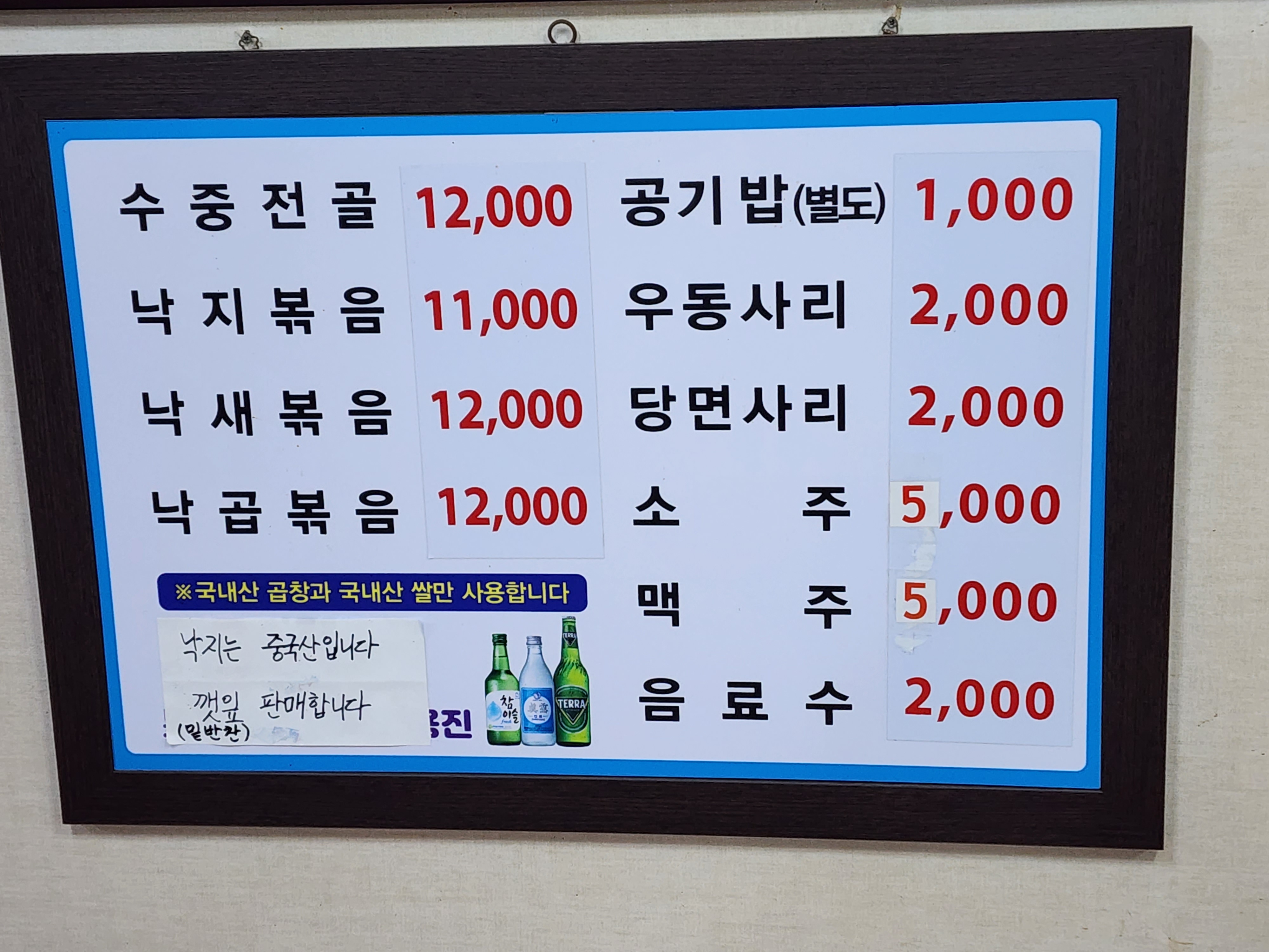 메뉴는 간단하게 4가지 정도로 되어있었고 저희는 대표메뉴인 수중전골 2인(24.0)을 주문했어요.