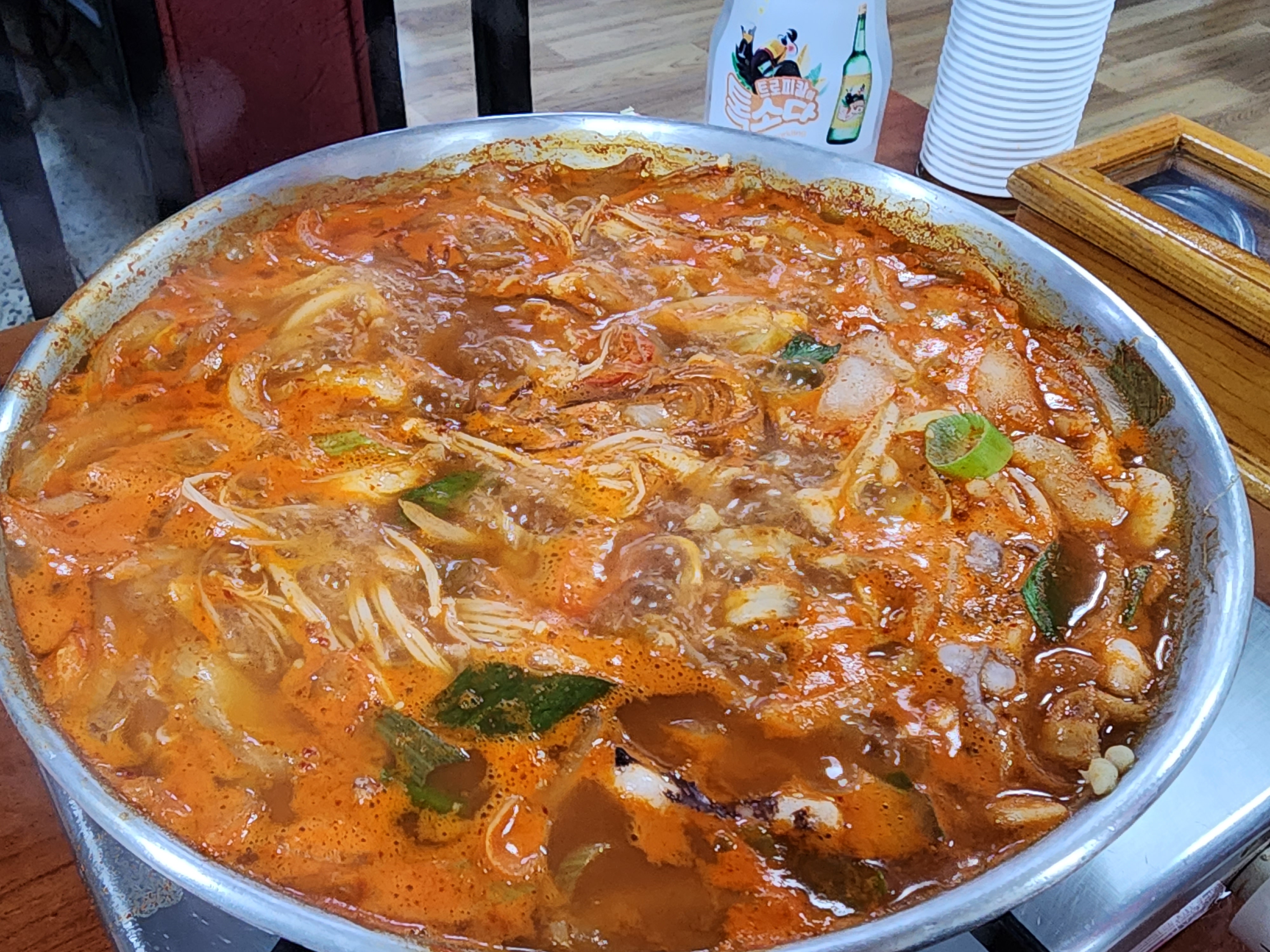 맛은 얼큰하고 해물이 들어가서 인지 엄청 시원한 맛이더라고요. 점심부터 소주 한잔 먹게 되는 맛이더라고요!어쩔 수 없이 한병 클리어!