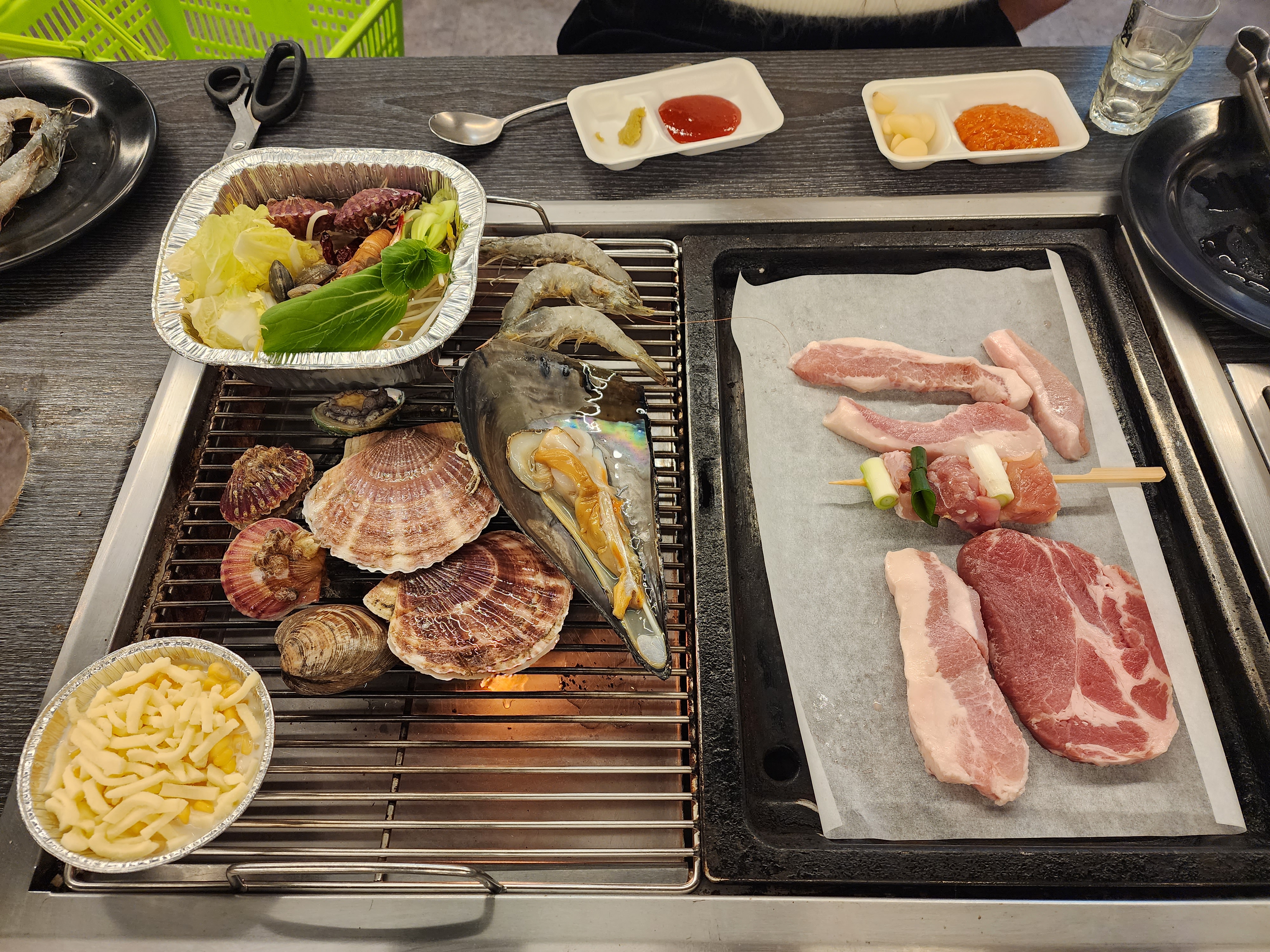 조개와 콘치즈 조개탕 먹는 직화 그릴,