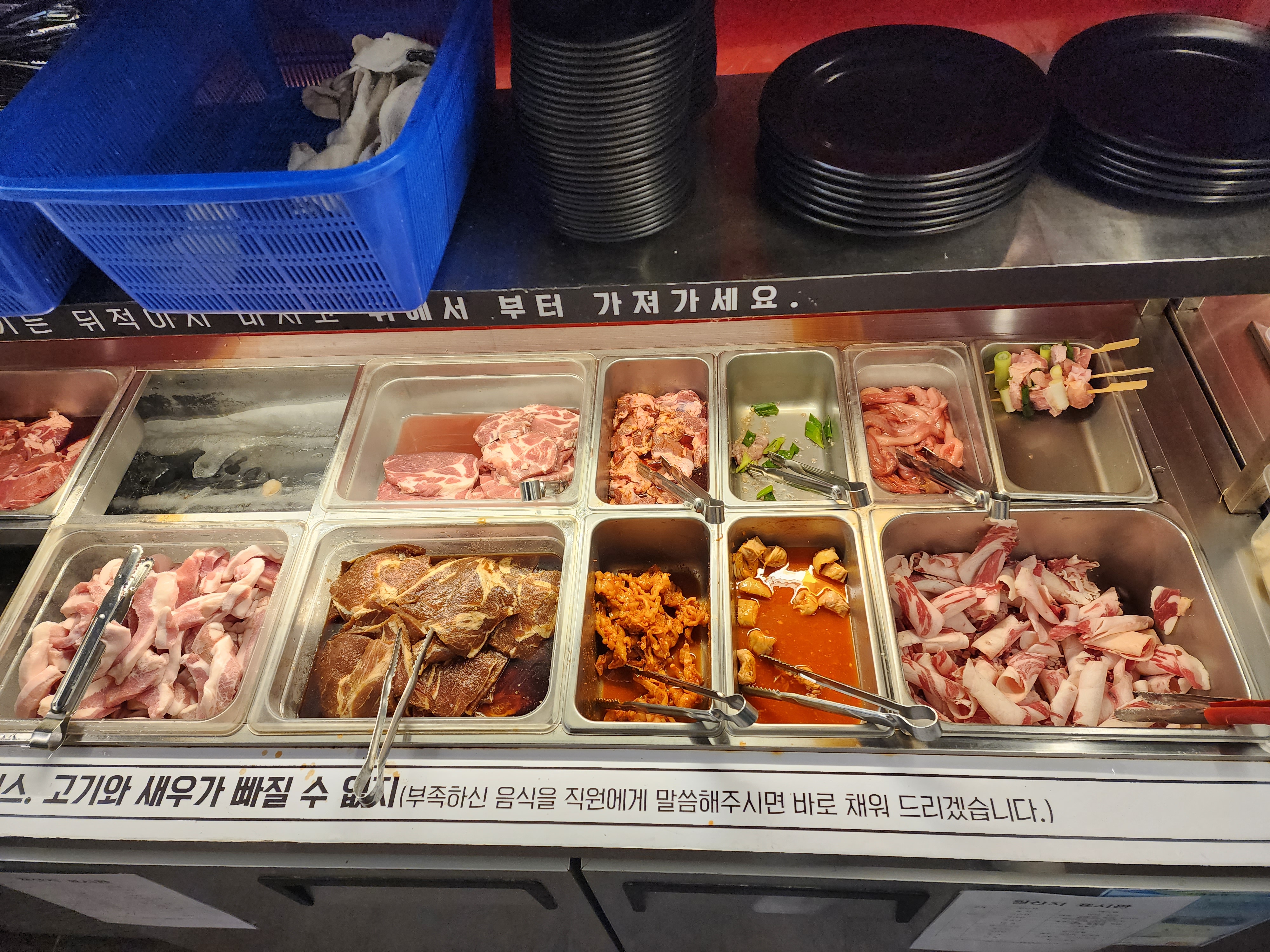 고기 종류도 항정살, 삼겹살, 목살, 돼지갈비, 소고기, 닭꼬치, 우삼겹, 막창, 갈매기살 등 엄청 다양하더라고요.