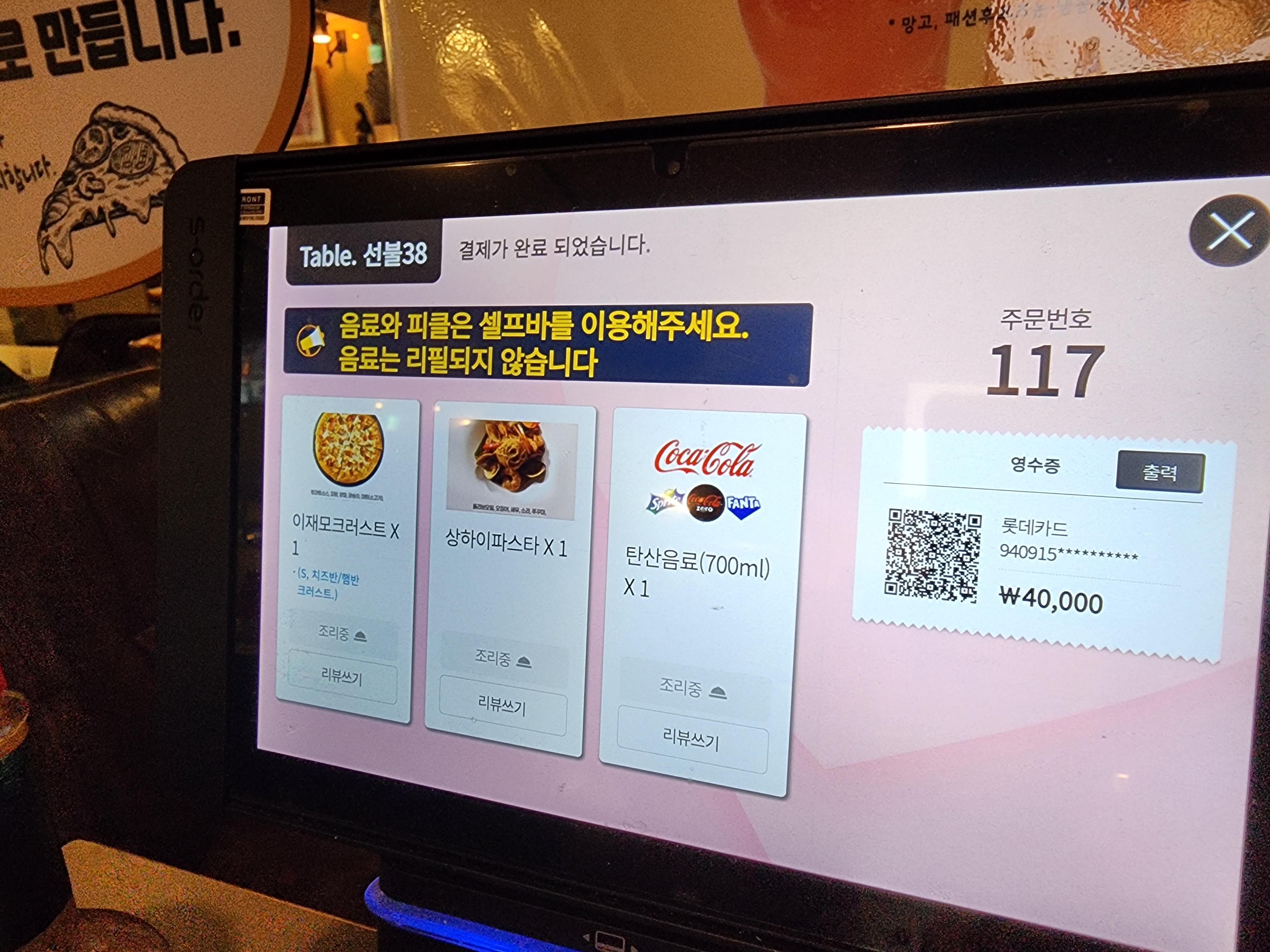 좌석에 앉으면 테블릿으로 주문하면 되더라고요