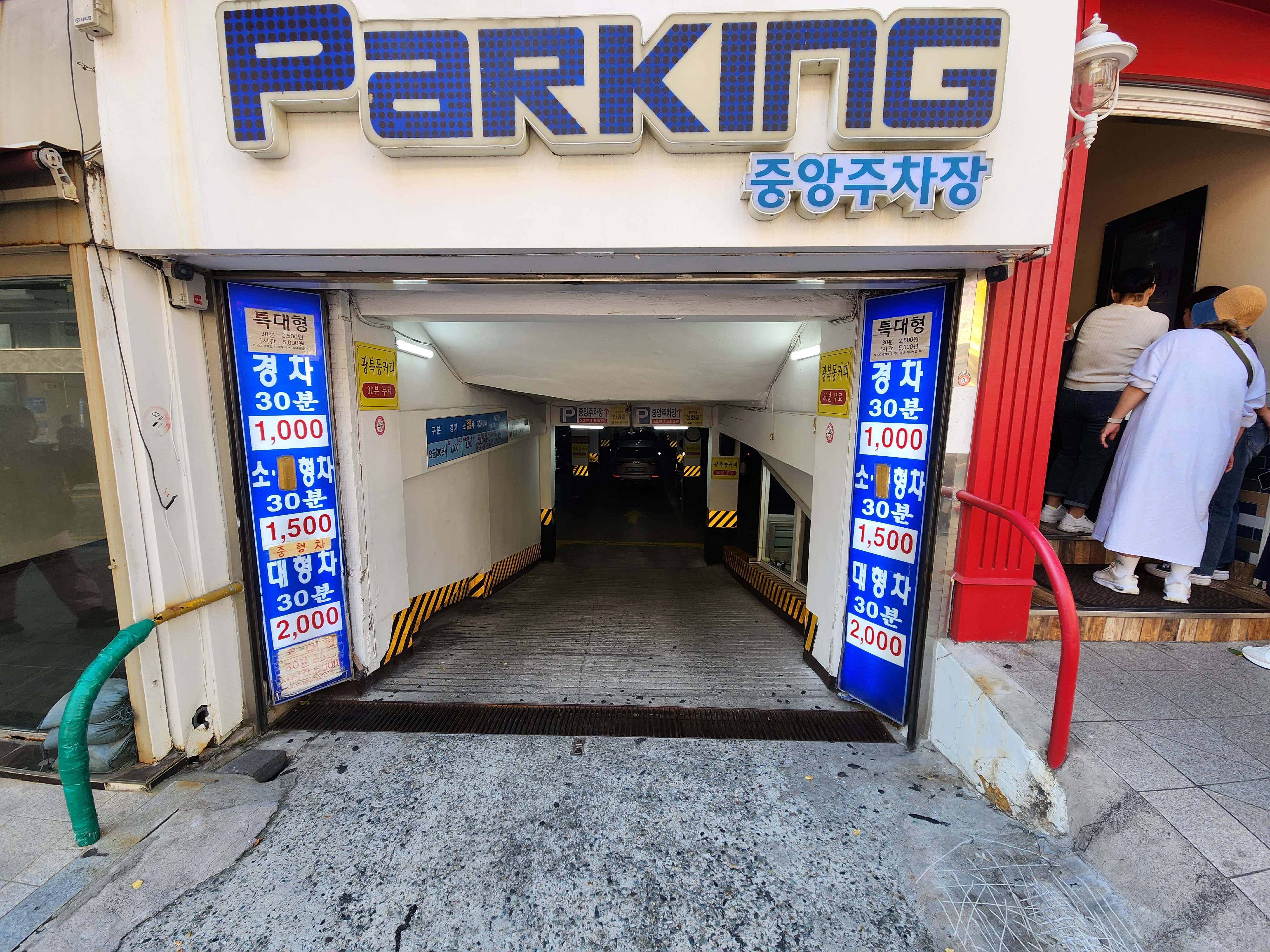 가게 입구 사진인데 바로 밑에 주차장이 있었는데 가격은 좀 사악하더라고요.
