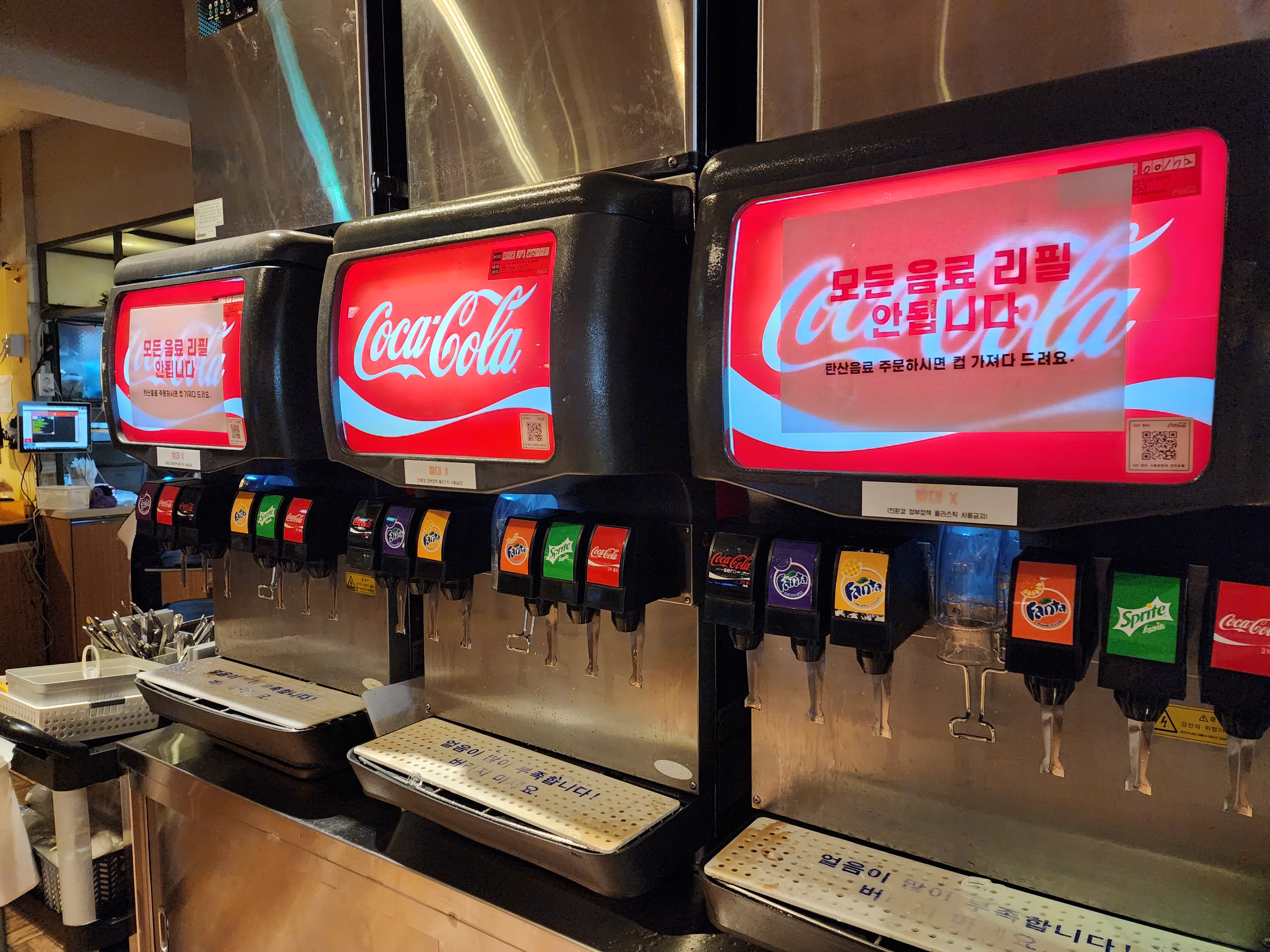 음료종류는 제로코카콜라, 코카콜라, 스프라이트,