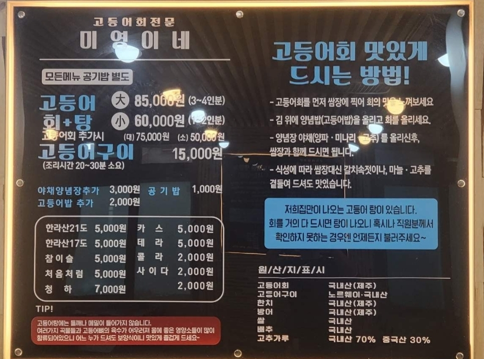 오늘은 제주도 고등어회 맛집 미영이네를 다녀왔습니다. 매장에서 드시는 걸 선호하시는 분들이라면