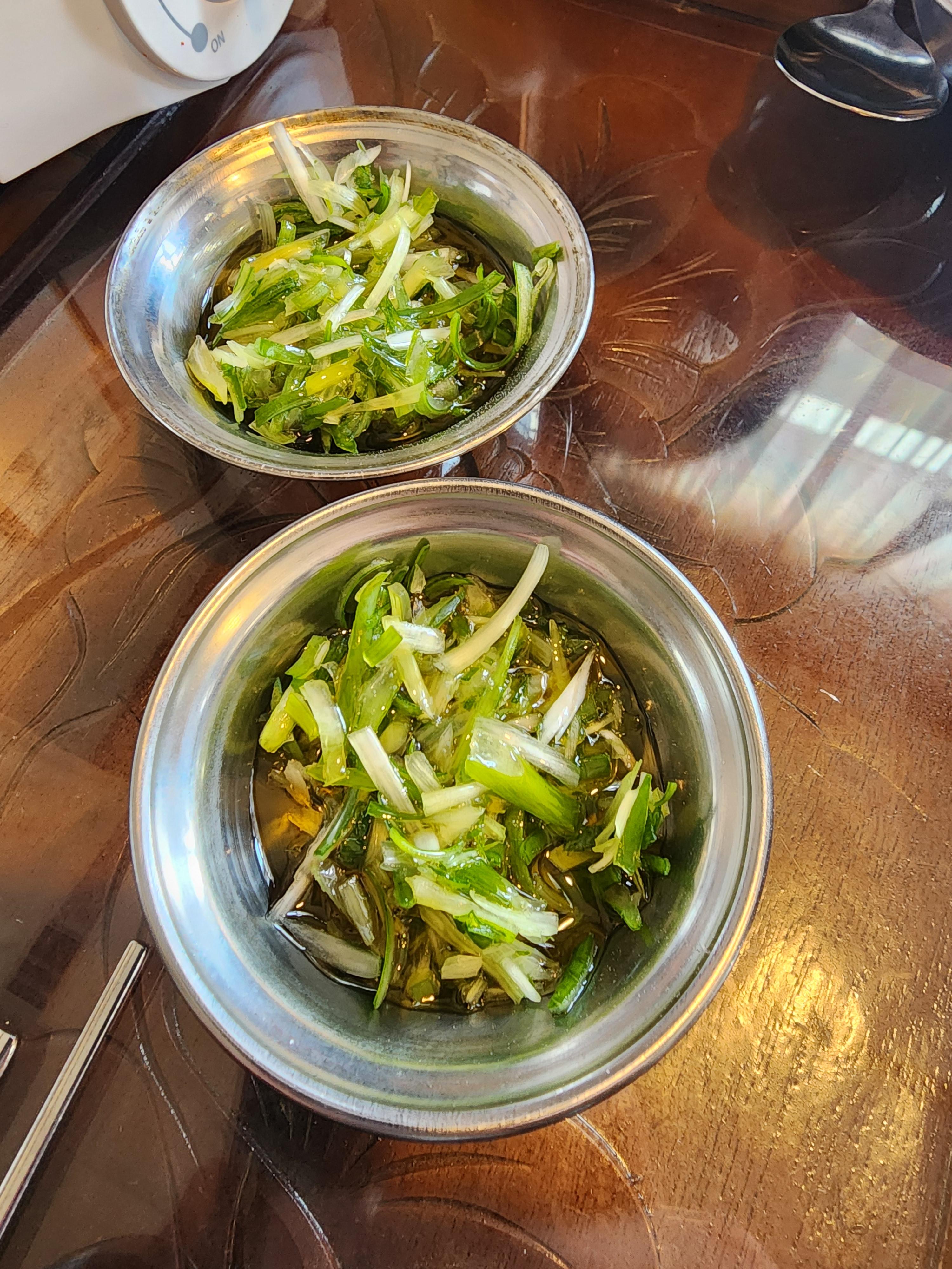 특이하게도 기름소금장에 파채를 넣은 양념이 나오더라고요.