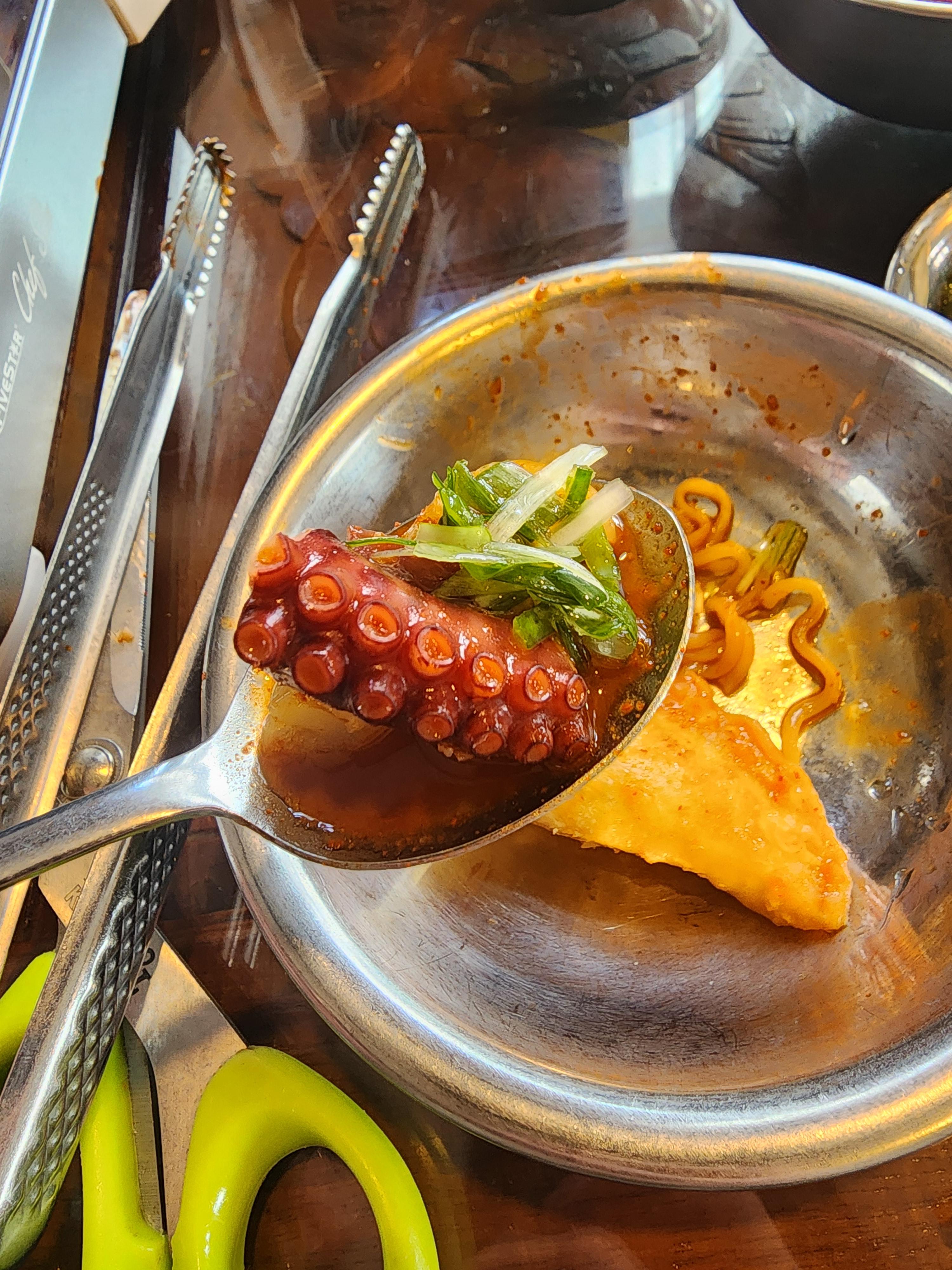 팔팔 끓으면 사장님이 오셔서 문어 잘라주시고 먹는 방법까지 친절하게 알려주시더라고요.